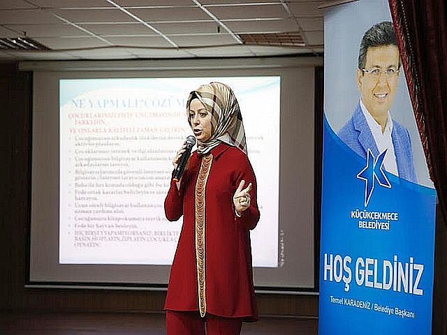 Çocuk Gelişimi Uzmanı Esra Korkmaz, Yavuz Sultan Selim Ortaokulu öğrencileriyle bir araya geldi. Korkmaz, konuyla ilgili ebeveynlere de pek çok görev düştüğünü söyleyerek, önemli tavsiyelerde bulundu.