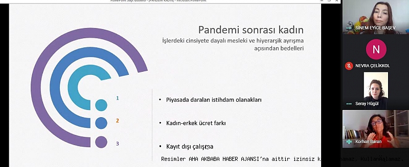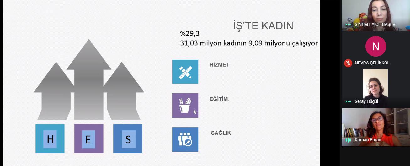 Online olarak düzenlenen etkinliğe toplumun her kesiminden katılım sağlanması dikkat çekti. Projenin Webinar ayağına konuşmacı olarak Türkiye Kadın Girişimciler Derneği Yönetim kurulu Üyesi Ayşegül Özsan katıldı. Konuk olan Kadın Girişimciler Derneği Yönetim Kurulu Üyesi Ayşegül Özsan, kadın ve erkek aynı iş yüküne sahipken, erkek eve gittiğinde stresi azaldığını fakat kadının bu dönemde stresinin daha fazla artığını belirtti. "İş birliği çok önemli, çünkü kadın ve erkek iş birliği yaptığında çocuk da iş birliği yapmayı öğreniyor, Çocukların ileride eşit bir birey olmasını istiyorsak buna önem göstermeliyiz" dedi. Çalışan kadınların evdeki iş yükünün artmasından dolayı kendilerine zaman ayıramadıklarını, işlerinde sıkıntı yaşadıklarını belirtti. Çalışan annenin yükünün çok önemli bir yük olduğunu, pandemi öncesinde Türkiye'deki kadın istihdamının zaten az olduğunu, kadın çocuk sahibi olduktan sonra ise istihdamdan ayrılan kadın sayısının artığını belirtti. "Bizler ise kadınların tekrar iş hayatına geri dönebilmesi için çabalıyoruz" dedi.