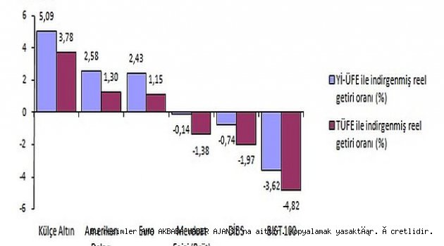 Yİ-ÜFE ile indirgendiğinde; yatırım araçlarından Amerikan Doları %2,58 ve Euro %2,43 oranında reel getiri sağladı. Buna karşılık Borsa İstanbul (BIST) 100 Endeksi %3,62, Devlet İç Borçlanma Senetleri (DİBS) %0,74 ve mevduat faizi %0,14 oranında yatırımcısına kaybettirdi. TÜFE ile indirgendiğinde ise Amerikan Doları %1,30 ve Euro %1,15 oranında reel getiri sağlarken, BIST 100 Endeksi %4,82, DİBS %1,97 ve mevduat faizi %1,38 oranında yatırımcısına kaybettirdi.