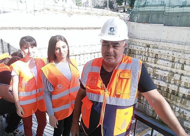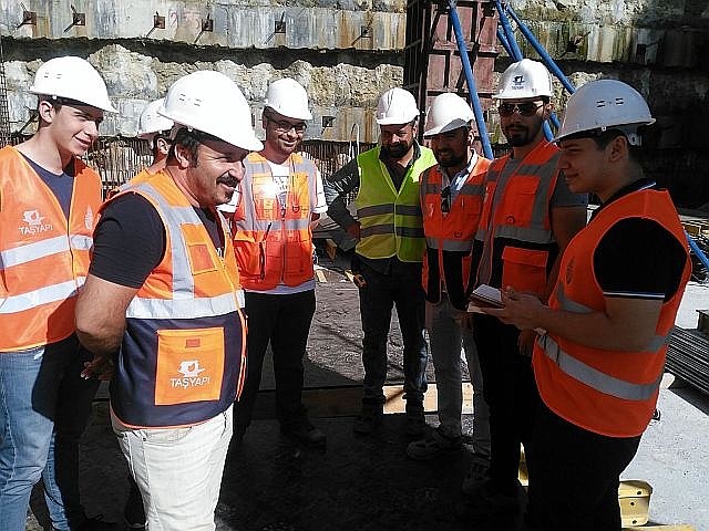 Şantiye Şefi İnşaat mühendisi Ayhan Gümüş ve saha mühendisi Murat Eryılmaz 3. sınıf stajyer öğrencilere şantiye sahasında bilgi ve birikimlerini aktararak mesleğin inceliklerini yerinde öğretiyorlar. Belediye inşaatı şantiye müdürü Yük. mimar Zafer Deniz stajyerlerin eğitiminde geleceği bir bakış açılarında mesleğin püf noktalarını bire bir öğretiyor.
