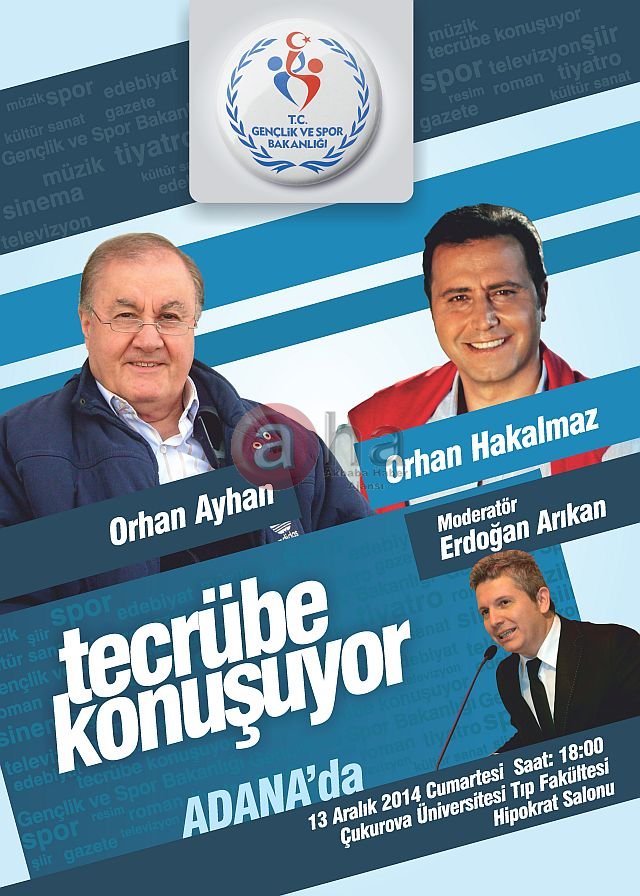 Hadi, Gençlik ve Spor Bakanlığı tarafından yürütülen ve çok yararlı olduğuna inandığı "Tecrübe Konuşuyor Projesi" kapsamında modaretörlüğünü Türkiye Radyo Televizyon Kurumu (TRT) Spor Spikeri Erdoğan Arıkan’ın yapacağını, konuşmacı olarak da Türk Halk Müziği Ses Sanatçısı Orhan Hakalmaz ve Gazeteci Orhan Ayhan’ın Adanalı öğrencilerle bir araya geleceğini kaydetti.
