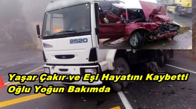 Edinilen bilgilere göre Trabzon’dan Bayburt istikametinegitmekte olan 61 DH 536 plakalı Yaşar Çakır yönetimindeki otomobil, sabah saat 07.20 sıralarında Zigana Tüneli’nin Gümüşhane tarafındaki çıkışında kayganlaşan yolda kontrolü kaybederek karşı yönden gelenMustafa Tüfekçi yönetimindeki 29 AN 388 plakalı kamyonla çarpıştı. Kazada otomobil sürücüsü yaşar Çakır ve aynı araçta bulunan eşiNazire Çakır hayatını kaybederken, yaralanan oğulları Pir Ali Çakır (49) ambulansla kaldırıldığı Torul Devlet Hastanesi'nde yapılan ilk müdahalenin ardındanGümüşhane Devlet Hastanesi'ne sevk edilerek burada tedavi altına alındı.