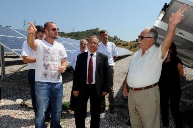 Karşıyaka Belediyesi’ni ziyaret eden Çanakkale Belediye Başkanı Ülgür Gökhan, Güneş Tarlası Projesi hakkında bilgi aldı. Ülgür ve beraberindekiler, daha sonra Güneş Tarlası’nın kurulu olduğu Örnekköy’deki alanı gezerek, yerinde incelemelerde bulundu. Projenin yenilenebilir kaynakların kullanımı açısından son derece önemli olduğunu belirten Başkan Gökhan, benzer bir sistemi Çanakkale’de de kurmak istediklerini söyledi. Başkan Ülgür Gökhan, “Yenilenebilir enerji kaynakları, günümüzde çok önemli hale geldi. Sosyal demokrat belediyeler olarak bu konuya büyük önem veriyoruz. Karşıyaka Belediyesi’nin kurduğu Güneş Tarlası da bunun en iyi örneklerinden. Biz de Çanakkale’de böyle bir projeyi hayata geçirmeyi planladığımız için gelip incelemelerde bulunmak istedik” dedi.