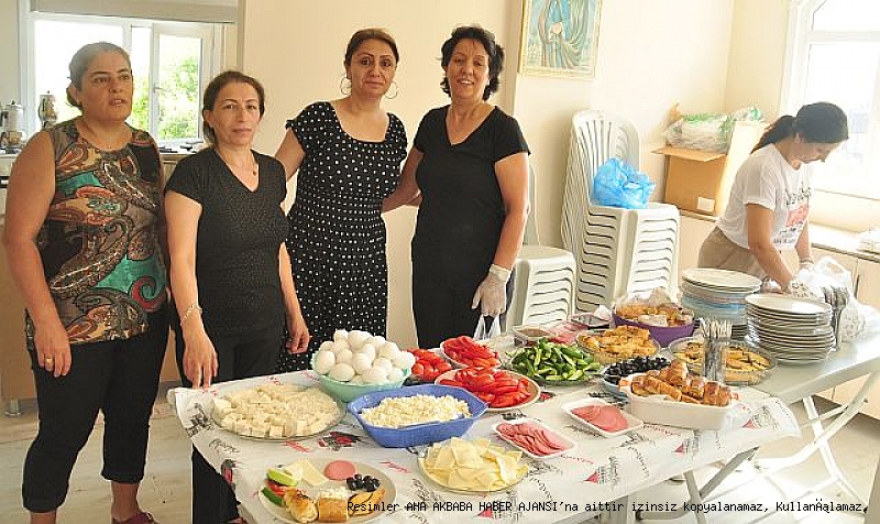 Dernek yöneticilerinden Şadiye Bozyurt, Ayzer Altınel, Gülizar Karakuş, Suha Alhas, ve Zübeyde Eligüzel'!in kendi elleriyle hazırladıkları kahvaltı ikramlarını misafirlerine sundular.