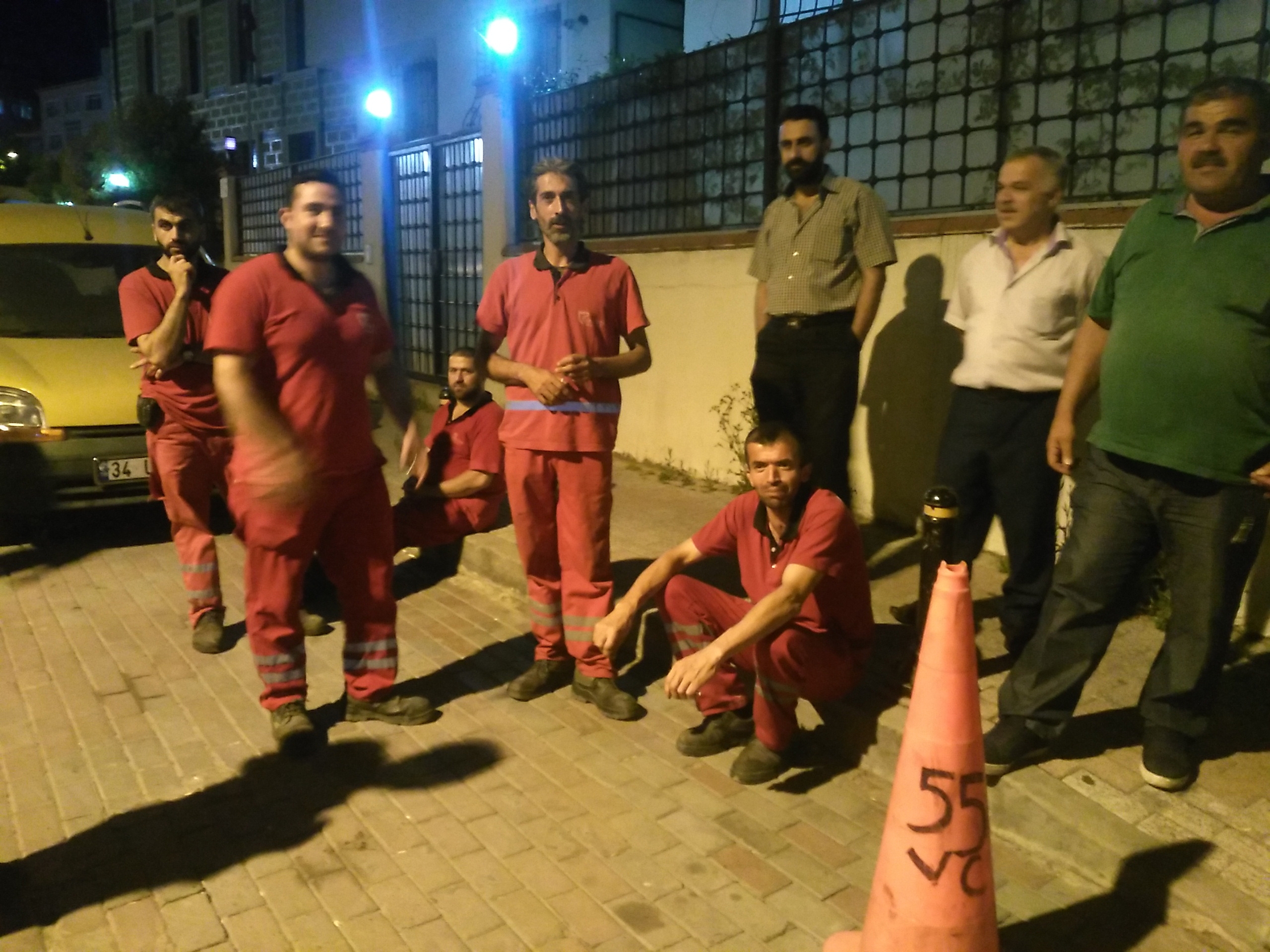 Güngören Belediyesi temizlik işleri şantiye Müdürü Ahmet Bingöl temizlik işleri görevlilerinin yanına gelerek Geçmiş olsun dileklerinde bulunurken Güngören Belediyesi başkan yardımcısı Ensar Özcan da olay mahalinde Ahmet Bingöl'den olayla ilgili bilgi aldı.