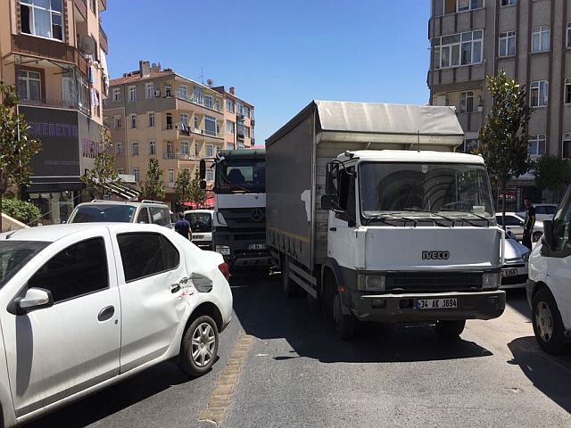 GaziosmanPaşa caddesi üzerinde mal yüklü kamyonetin sürücüsü önündeki otomobili sollamaya çalışınca kazaya davetiye çıkardı. Kamyon sürücüsü dar yolda sollama yaparken önündeki otomobile arkadan girdi.