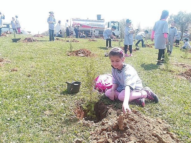 Belediye Park bahçeler müdürlüğü ekiplerinde daha nceden açılan kuyulara çocuklar elleri ile fidanlarını diktiler. Havanın güzel olması çocukların enerjisini bir kat daha arttırırken 50 adet fidan dikildi. Ergenekon öğrencileri her diktikleri fidanlada hatıra fotoğrafı çektirerek fidanlarına özel isimler verdiler. Fidan dikimi sonrası verilen sertifikalarlada bu özel gün ebedileştirildi. Kale Outlet Center kurumsal pazarlam sorumlusu Şefika Kahraman sertifikaları verirken öğrencilerin mutluluğu gözlerinden okunuyordu.