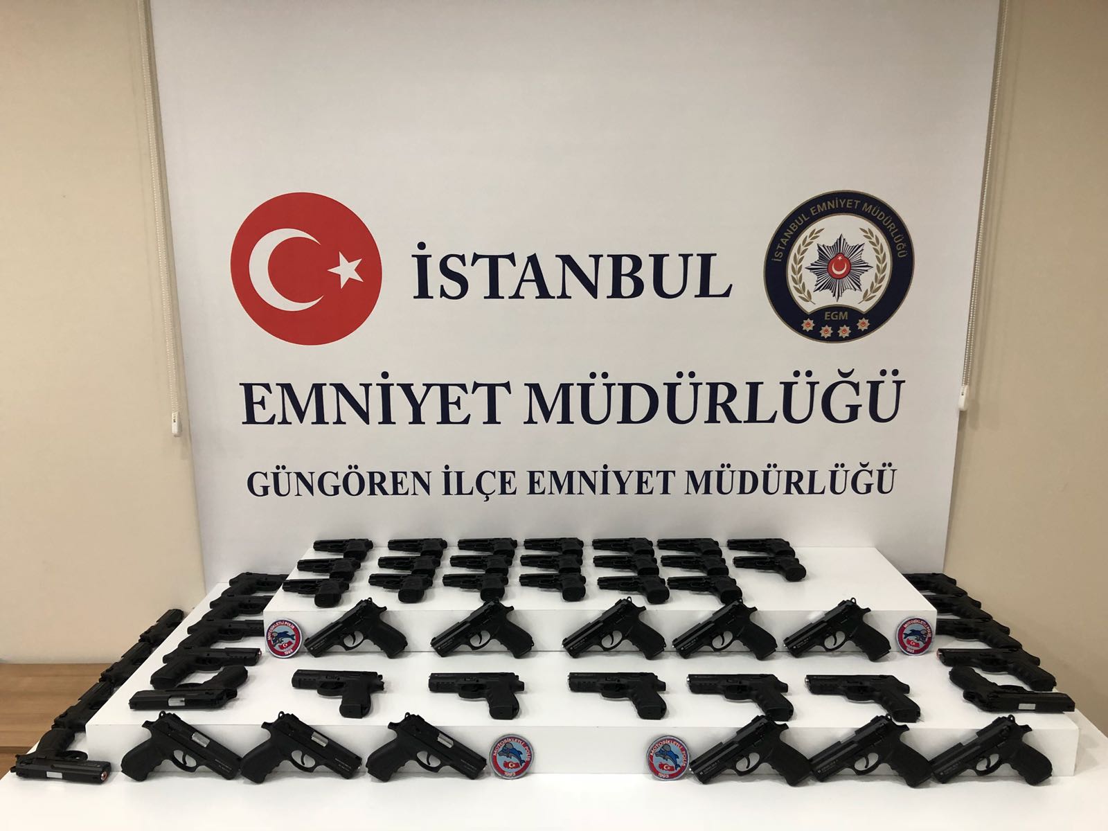Güngören emniyetine bağlı Yunus ekipleri ilçe giriş çıkışlarında yaptığı uygulamaların birinde şüphelendikleri bir aracı durdurarak arama yaptı. Aracın bagajında yapılan aramada kutu içerisinde 50 adet kuru sıkı tabanca ele geçirdi. Araç sürücüsü gözaltına alınırken Faturasız olan kurusıkı tabancalara el konuldu.