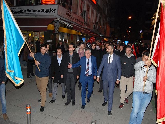 Güngören ülkü ocakları Şehitler için Kuranı Kerim okuturken yürüyüş düzenleyerek "Şehitler ölmez, Vatan Bölünmez" dedi.
