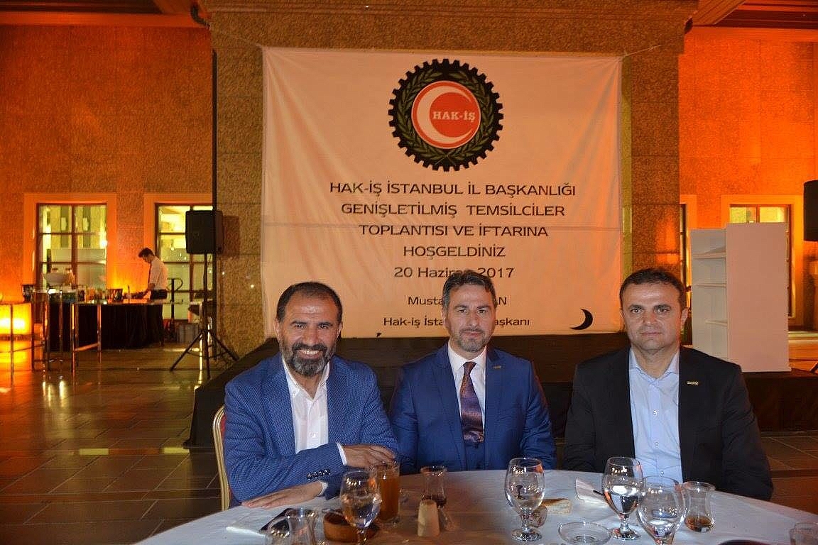 Mustafa Şişman başkanlığındaki HAK-İŞ Konfederasyonu İstanbul İl Başkanlığı'nın Haliç kongre Merkezi'nde gerçekleştirdiği geleneksel iftar programında gönül köprüsü kuruldu. Yapılan iftar programında hem Ramazan'ın güzelliği yaşanırken hem de genişletilmiş temsilciler toplantısı icra edildi. Gecenin anlamına hitaben bir konuşma yapan Başkan Mustafa Şişman, ''Ramazan'ın bilik ve beraberlik içinde geçmesini temenni ederek, bu vesileyle yaklaşan herkesin yaklaşan Ramazan Bayamı'nı kutladı ve katılımlarından dolayı herkese teşekkür etti.