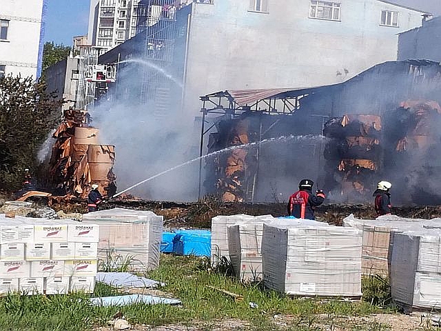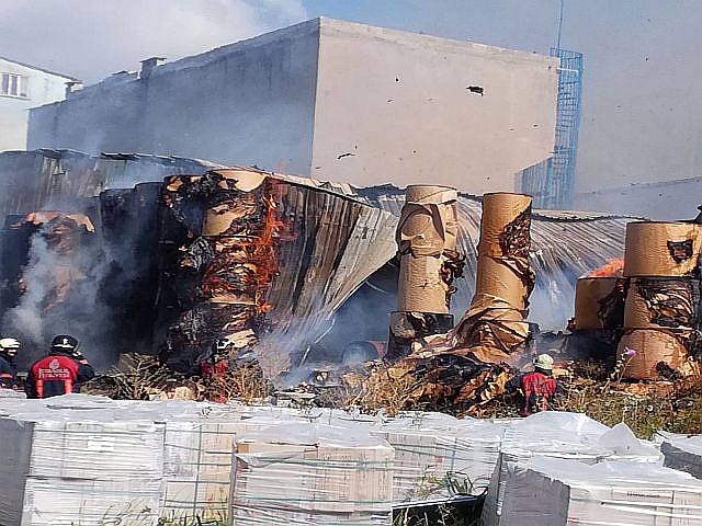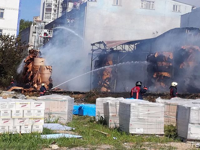 İstanbul Halkalı'da karton fabrikasında yangın çıktı. Yangına çok sayıda itfaiye ekibi müdahale ederken yangın söndürme helikopteride yardım etti.
