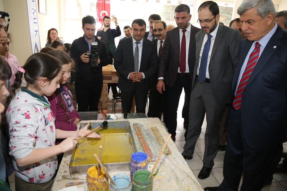 Oldukça neşeli bir ortamda gerçekleştirilen ziyarette Başkan Karaosmanoğlu çocuklarla hem tanıştı, hem de neler yaptıkları ile ilgili bilgi aldı. Branş stantlarını tek tek gezen Başkan Karaosmanoğlu, çocuklarla birlikte flografi yaptı, ebru sanatının yapılışını izledi. Çocukların yoğun ilgisiyle karşılaşan Başkan İbrahim Karaosmanoğlu, çocukların isteğini kırmayarak teker teker fotoğraf çekildi. Daha sonra idareci ve öğretmenlerden atölye ile ilgili bilgi alan Başkan Karaosmanoğlu, “Çocuklar için her şeyin en iyisini yapmalıyız, onların en iyi şekilde yetişip daha donanımlı bireyler haline gelerek ailelerine ve ülkemize faydalı olmaları bizim en büyük kazancımızdır” dedi. Atölyenin açılışında emeği geçenlere birer plaket veren Başkan Karaosmanoğlu, atölye içinde açılan sergiyi de gezerek ziyaretini sonlandırdı.