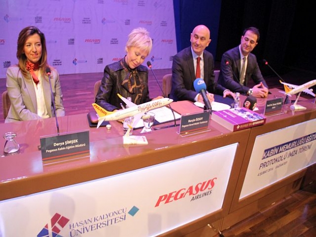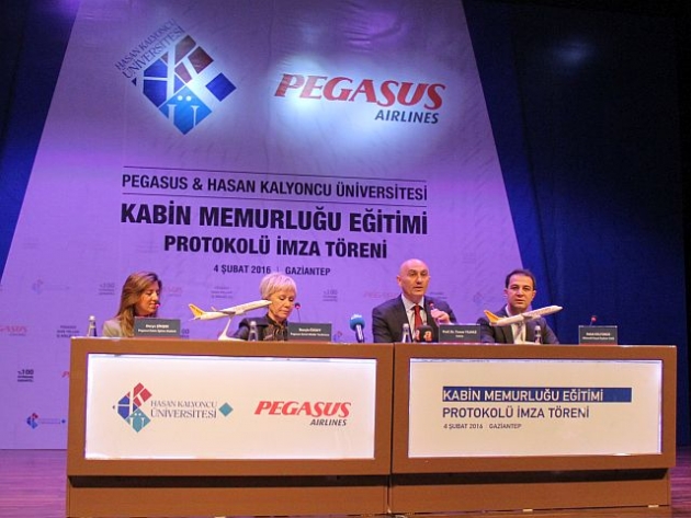 Hasan Kalyoncu Üniversitesi Kongre ve Kültür Merkezinde düzenlenen törende protokolü, Pegasus Hava Yolları Kabin Hizmetlerinden Sorumlu Genel Müdür Yardımcısı Nurçin Özsoy ile Hasan Kalyoncu Üniversitesi Rektörü Prof. Dr. Tamer Yılmaz imzaladılar.