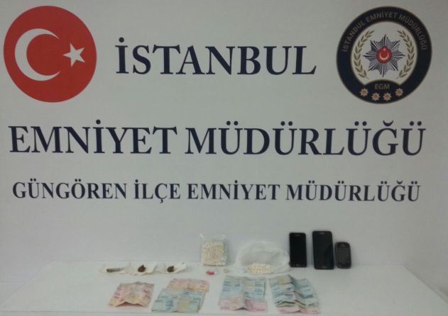Güngören İlçe Emniyetine bağlı Ekipler hafta sonu düzenledikleri huzur operasyonunda şüphelendikleri bir aracı durdurmaları üzerine yapılan aramada uyuşturucu madde ele geçirildi.Hafta sonu yapılan huzur operasyonu kapsamında,Tozkoparan Mahallesi Cevat Açık Alın Caddesi üzerinde Polis ekiplerinin şüphelendikleri bir aracı durdurması üzerine yabancı uyruklu 3 şüpheli gözaltına alındı.Araç içi ve şahıslarda yapılan aramada toplam 796 adet Lexus marka uyuturucu hap, Daralı ağırlığı 15.74 ğr Kubar esrar ila uyuşturucu madde satışından elde edildiği düşünülen toplam 2240 TL nakit para ele geçirilip, Emniyet birimleri tarafından muhafaza altına alındı.Operasyon sonrası tutuklanan zanlılar çıkarıldıkları mahkemece tutuklanıp cezaevine gönderildi.