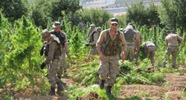 Komandoların ardından JOH lere çevre güvenliği aldıktan sonra girilen esrara tarlalarında 2 kmuzaklıktan borular döşenerek sulama yapıldığı ve sulamada kullanılan boru ve hortumlar toplanarak imha edildi.