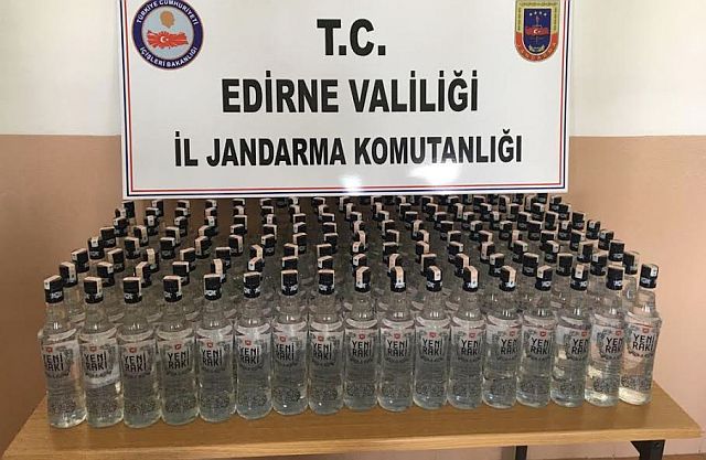 Edirne'nin Havsa İlçesi Taptık Köyünde alınan bir ihbar üzerine harekete geçen ekipler C.Ö.'nün evine baskın yaptı. Yapılan aramalar neticesinde kaçak yollarla üretildiği tespit edilen 147 şişe olmak üzere toplam 103 litre kaçak içki ele geçirildi. Zanlıya 10.506 tl para cezası verildi.