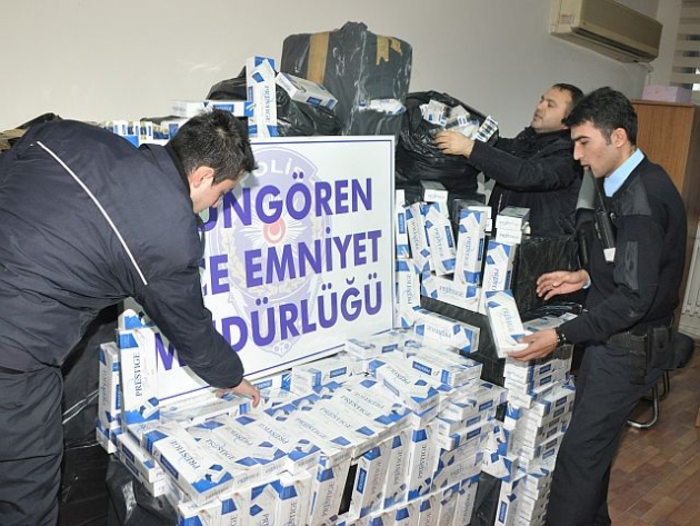 Kaçak sigara satıcıları mal teslimi için Güngören'i tercih etmeleri başlarına bela oldu. Önleyici büro amirliğine bağlı ekipler iki münübüsün arka arkaya durarak birbirlerine koli yüklemelerini şüpheli görünce inceleme başlattı. Yüklenen kolilerin kaça sigara yüklü olduğunu fark eden emniyet güçleri anında operasyuon yaparak 2 kişiyi göz altına aldı.Piyasa değeri 50 bin liyanın üstünde olan kaçak sigaraların yanı sıra şahısların üzerindeki alış verişde kullanııldığı zan edilen 20 bin liraya el kondu. Güngören emniyenin ardı arkası kesilmeyen bu başarılı çalışmaları sayesinde ilçeyi nakil olarak suçlular yakayı tek tek ele veriyor. Merkez karakol amir yardımcısı İbrahim Bettemir ve ekibi yakalanan sigaralarla ve paralarla ilgili soruşturmayı derinleştirerek şahısları adalete teslim ettiler.