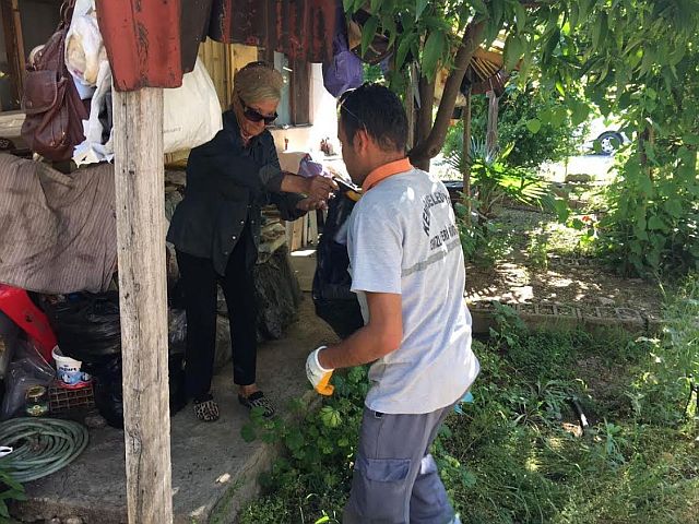 Evde ikamet eden 80 yaşlarındaki kadının rızası alınarak çöp ev temizlendi. Eski kıyafet, eski eşyalar, plastik, kâğıt ve benzeri atık maddelerle dolu olan evin temizlenmesi sonucu yaklaşık bir kamyon dolusu çöp çıktı.