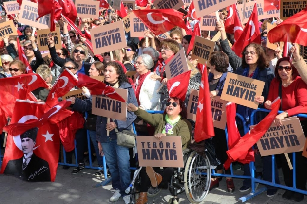 Cumhuriyet Halk Partisi(CHP) İstanbul İl Kadın Kolları'nın 8 Mart Dünya Emekçi Kadınlar Günü'nde Bakırköy Cumhuriyet(Özgürlük) Meydanı'nda düzenlediği "kadınlar Barış ve Kardeşlik Türküleri Söylüyor" etkinliğinde Meydanı dolduran binlerce kadın hep beraber türkü söyledi, 16 Nisan Referandumuna "Hayır" dedi.