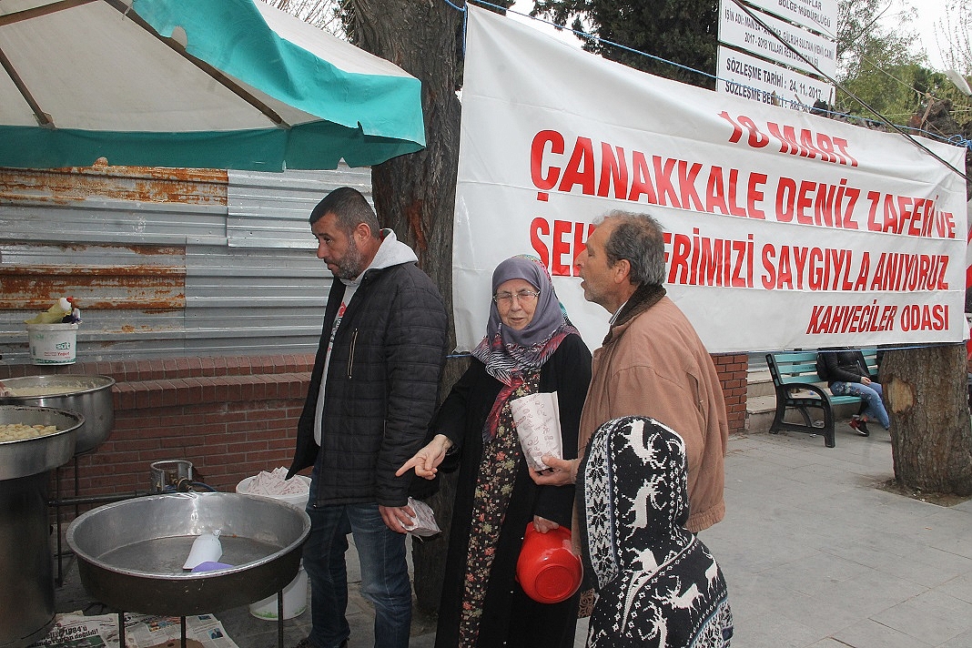 Akhisar Kahveciler Odası, 18 Mart Çanakkale Şehitlerini Anma Günü Yeni Gülruh Camii önünde lokma hayrı düzenledi.