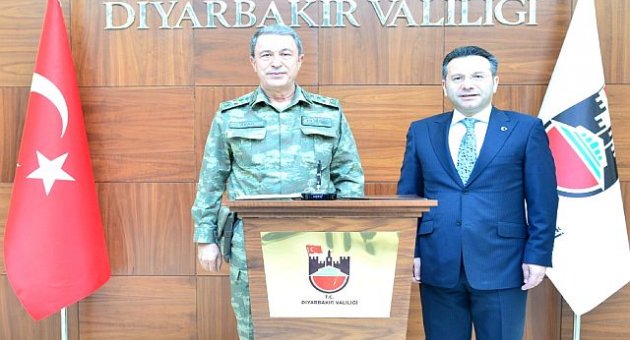 Valilik önünde, Vali Aksoy tarafından karşılanan Orgeneral Akar ve beraberindeki komutanlar, Valilik şeref defterini imzaladıktan sonra, makama geçerek Vali Aksoy ile bir süre görüştükten sonra Diyarbakır Valiliği’nden ayrıldı.