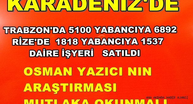 Trabzon’ da 5100 yabancı uyruklunun 6892 adet taşınmazı,
