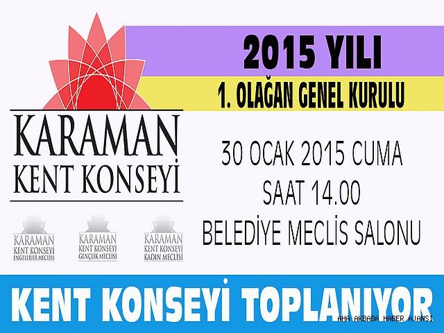 Kent Konseyi Toplantısı 30 Ocak Cuma günü saat 14:00 ‘de Kent Konseyi Başkanı Ali Konukseven başkanlığında toplanacak. Açılış ve yoklama ile başlayacak olan toplantıda; Faaliyet raporu okunacak ve Yabancılar çalışma gurubu kurulacak.