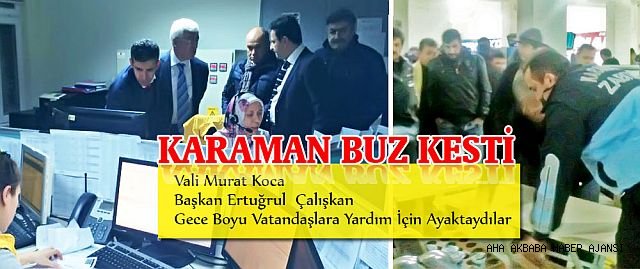 Sıcaklığın eksi 10 derecenin altına düşmesi ile don ve buz Vali Murat Koca ve Belediye Başkanı Ertuğrul Çalışkan gece boyunca çalışmaları yerinde incelerken, otogarda mahsur kalan vatandaşlara yiyecek ve konaklama ihtiyaçlarının karşılanması talimatını verdiler. Karaman Belediyesi ekipleri, otogarda mahsur kalan vatandaşlara yemek ikramında bulundu. Vatandaşlar "Belediyemizin bu hassasiyetinden dolayı çok teşekkür ederiz" dediler.