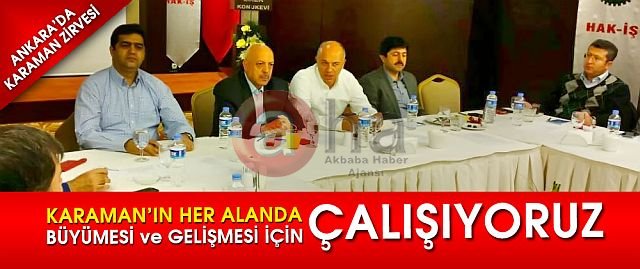 Karaman'a dair birçok konunun masaya yatırıldığı toplantı, Hak-İş Emek Konuk Evi'nde yapıldı. Karaman'ın sosyal ve kültürel gelişimi, ekonomik anlamda büyümesi, kamu yatırımları gibi önemli konular hakkında bilgi alışverişlerinin yapıldığı toplantıya;