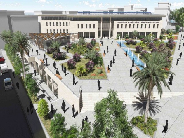 Proje kapsamında mevcut belediye hizmet binası ve çevresindeki yapılar yıkılarak Karamürsel’e modern bir kent meydanı kazandırıldı. Üç blok halinde duygulanan projede meydan olarak kullanılacak 5 bin metrekare açık alan yer alıyor. Bodrum, zemin ve 2 kattan oluşan yeni hizmet binasının bodrum katı 270 araç kapasiteli otopark olarak hizmet verecek. A ve B blokların alçı sıva işleri devam ediyor.