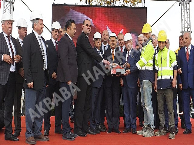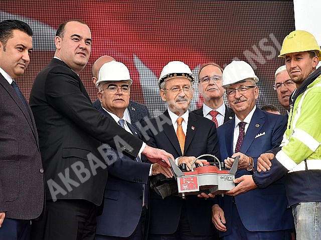 Cumhuriyet Halk Partisi Genel Başkanı Kemal Kılıçdaroğlu'nun halka hitabının ardından protokol mensuplarının katılımıyla temel atma töreni için hazırlanan beton atma butonuna basarak tesisin temel atma işlemini gerçekleştirdi.