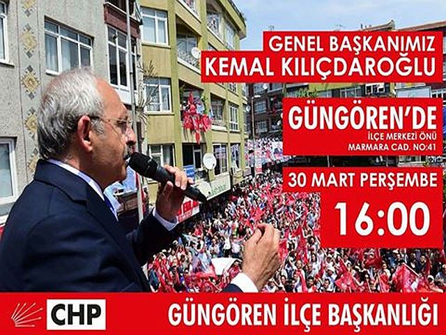 Chp Genel Başkanı Kemal Kılıçdaroğlu bugün Güngören'e geliyor.