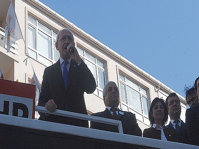 Güngören Chp İlçe Binası önünde coşkulu bir kalabalık tarafından kaşılanan Chp Lideri Kemal Kılıçdaroğlu burada Güngörenlilere seslenerek Hayır oyu istedi.