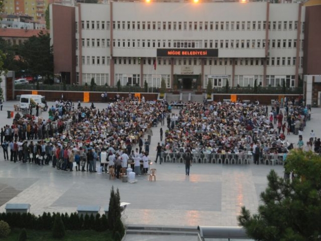 Niğdeliler iftarda belediye önü kent meydanında buluştu. Niğde Belediyesi tarafından 'Mahallelerde İftar Sofrası' sloganıyla farklı farklı mahallede gerçekleştirilen iftar buluşmaları, Niğde Kent Meydanı'nda önceki akşam düzenlenen büyük organizasyonla ilgi çekti. Verilen iftar yemeğinde aynı sofra etrafında buluşan binlerce Niğdeli birlikte orucunu açtı.