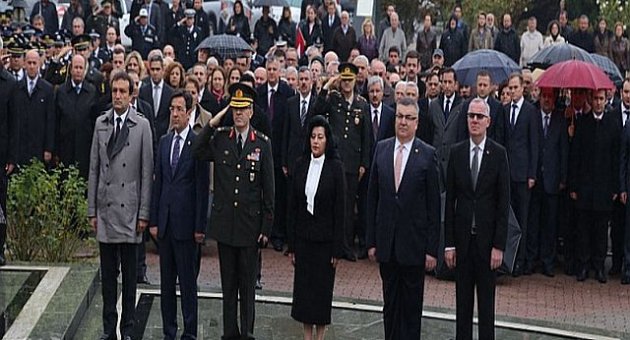 Çelenk sunma töreninin ardından saatler 09.05’i gösterdiği sırada iki dakikalık saygı duruşunda bulunularak bayraklar yarıya indirildi.
