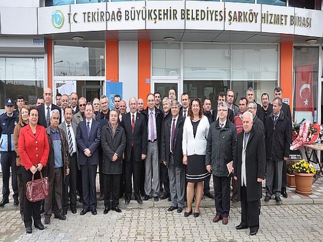 Tekirdağ Büyükşehir Belediyesi’nin ilçelerdeki ilk hizmet binası Şarköy’de açıldı. Açılış töreninde konuşan Tekirdağ Büyükşehir Belediye Başkanı Kadir Albayrak, Büyükşehir Belediyesi’nin ilk hizmet binası Şarköy’de açmaktan büyük bir mutluluk duyduklarını belirterek, “Göreve geldiğim günden bu yana 11 ilçemizi, mahallelerimizi ve köylerimizi sürekli geziyorum. Vatandaşlarımızla sürekli iç içe olmaya çalışıyorum. Halkımız büyükşehirden hizmet bekliyor. Büyükşehir Belediye Başkanı olarak ben, tüm ekibim ve tüm ilçe belediye başkanlarım ile birlikte Saray’ın Sefaalan’ından Şarköy’ün Terziköy’üne kadar insanlarımıza en iyi hizmeti götürebilirsek en büyük mutluluğu da biz yaşayacağız. Şarköy’e de Süleyman Başkanım ile birlikte büyük bir emek harcayacağız. 5 sene sonra bize verdiğiniz oyları ananızın ak sütü gibi size helal ettireceğiz. Biz bunu yapmaya mecburuz. 5 sene sonra farklı bir Şarköy olacak. Büyükşehir artık hizmete başlamıştır ancak büyükşehir olayının, hizmet olayının siyasal boyutu olmaz. Tüm siyasi partilerle birlikte hepimiz bu taşın altına elimizi koymak durumundayız. Bu taş ağır bir taş. Taşın altına her konulan el o taşı hafifleyip yukarı kaldıracaktır” dedi.