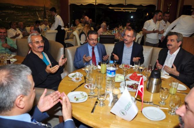 Konya sanayi iş adamları derneği Konsiad geleneksel iftarını verdi. Başakşehir hasırlı restaurantta verilen iftar yemeğine Konya derneklerinin yanı sıra iş adamları siyasetciler sanatcılar ve çok sayıda Konyalılar katıldılar. Onur konuğu olarak Konsiad sofrasında eski milli eğitim bakanı istanbul milletvekili Ömer Dinçer yer alırken, Düzce valisi Ali İhsan Su, düzce emniyet müdürü İsmail Hakkı Akyüz, de iftar sofrasında bulundular. Bahçelievler ,Sultanbeyli, Bayrampaşa, Esenyurt kaymakamlarının yanı sıra İstanbul bölge idari mahkemesi başkanı Ali Yaşar Yurdabak, eski milletvekili Yüksel Çavuşoğlu, İstanbul haliç üniversitesi rektörü Remzi Çetin, eski rektörlerden Prof. Dr. Adem Esen', İBB Otobüs Aş. genel müdürü Abdullah Yasir Şahin'de davete icabet edenler arasında yer aldılar.. İftar öncesi gelen konuklarını kapıda karşılayan Konsiad başkanı Abdullah Başçı ve yönetim kurulu, gelen misafirleri ile tek tek ilgilendiler. Selamlama konuşması yapan Konsiad başkanı Abdullah Başçı iftar bereketini dile getirirken komşumuz olan Irak'da yaşayan Türkmenlerin sorunlarına değinerek yardım kampanyasına herkesi davet etti. Bakan Ömer Dinçer'de selamlama konuşmasında Cumhurbaşkanlığı gündemine değinerek muhalefetin aday çıkartması ve halkın güvenin kazanması hakkında konuşma yaptı. Bakan Ömer Dinçer " Chp bu güne kadar kendi adamını seçtirmek istemiştir.Onlarda halka gitmeyi öğrenmeye başladılar. . Şayet halkın güvenini sağlayamamışsanız sizin arkanızdan gidermi? Güveni sağlayabilen başarılı olacaktır."dedi. Her zamanki programlarda olduğu gibi Aslen konyalı olan radyo ve program yapımcısı ve sunucusu Aslan Mustafa programın sunuculuğunu yaptı. Konsiad'ın sofrası çok sayıda dernek yönetimini ağırlarken Genk konsiad yönetimide görücüye çıkarak toplu resimler karesinde yerlerini aldılar. Türkmenler dernekler federasyonu başkanı Kemal Beyatlı, Beyhuder dernek başkanı Şükrü Karagül ve yönetim kurulu, Bozkır dernek başkanı ve yönetiminin yanı sıra ılgın Ereğlı, Cumra ve çok sayıda dernekler katıldı. Ogun gazetesi imtiyaz sahibi ferhat Yıldırım, Ekovizyon dergisi imtiyaz sahibi Adnan Ateş, Medya fm program yapımcısı ve sunucusu Deniz Kızı, şair yazar İsmail Hakkı Bağdat gibi çok sayıda misafirler iftarın bereketinde yer aldılar. Bakanla çekilen hatıra fotoğrafları ilede bu özel gün ebedileştirilmiş oldu. Yaklaşık 660 den fazla misafirlerin katıldığı iftar sofrası her geçen yıl dahada dolup taşarken Konsiad gücüne güç katarak yoluna devam ediyor. Yarin dernekler ile yapılack toplantıda Türkmenlere yapılacAk yardımların çalışmaları masaya yatırılacağı katılımcılara bildirildi.