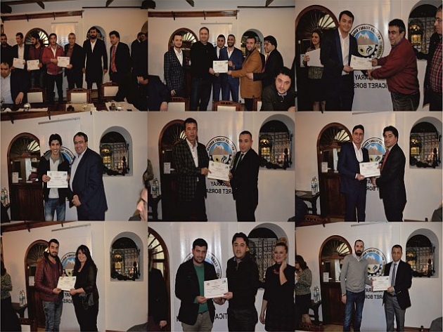 Aksaray Ticaret Borsası ve KOSGEB İş birliği İle düzenlenen uygulamalı girişimcilik eğitimi 30' ar kişi ve 4 Gruptan oluşuyor. Yapılacak eğitim ile 120 kişi sertifika almaya hak kazanmış olacak. İlk grup 72 saat süren ve eğitmenliğini Aksaray Ticaret Borsası Genel Sekreter Yardımcısı Selin Geçgel'in verdiği Uygulamalı Girişimcilik Eğitimini tamamlayarak sertifika almaya hak kazandı.