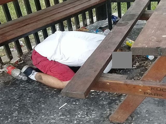 Belediye çalışanları yerde yatan kişinin yanına gittiklerinde ise öldüğünü ve yüzünün mosmor olduğunu gördüler. Olay yerine çağırılan polis ve sağlık ekipleri ise yaptıkları incelemelerde cesedin 2 günlük ve 40 ile 50 yaş arasında bir erkeğe ait olduğunu ve cesedin yanında uyuşturucu madde bulunduğunu tespit ettiler.