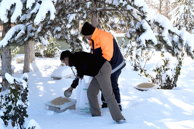 Çarşamba günü etkili olan kar yağışı sonrasında doğada yaşayan hayvanlar için Büyükşehir
