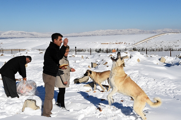 mezarlığı içerisinde belli noktalara köpek maması, ekmek ve buğday bırakıldı.