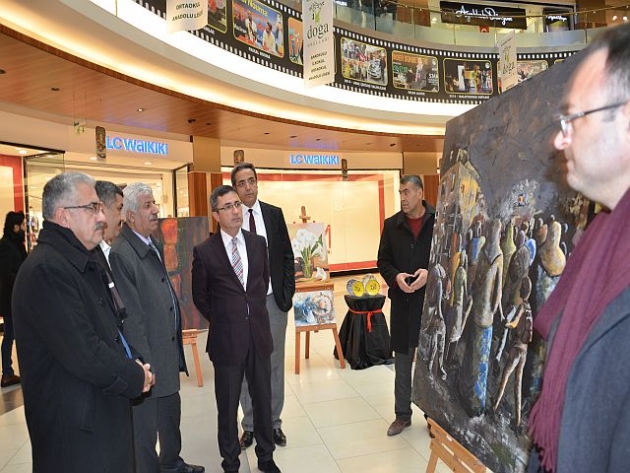 Malatyapark AVM’de açılan “Sanat Halep İçin Buluştu” sergisi, düzenlenen törenle açıldı. Törene, Büyükşehir Belediyesi Genel Sekreter Yardımcısı Ertan Mumcu, Yeşilyurt Belediye Başkanı Hacı Uğur Polat, Büyükşehir Belediyesi daire başkanları ile kurum kuruluş temsilcileri ve çok sayıda vatandaş katıldı. Törende konuşan Yeşilyurt Belediye Başkanı Hacı Uğur Polat, Halep’te insanlığın katledildiğini vurgulayarak, “Halep’te izahı, tarifi olmayan bir zulüm var. Güya insan hakları ve özgürlüklerin temsilcisi olan Batı, gerçek yüzünü Halep’te ortaya koymuş durumda. Bizim Milletimiz aziz bir millet, necip bir millettir. Bugün Ülkemizde 3 milyona yakın Suriyeli misafir kardeşimiz var. Halep’e yardım kampanyaları çerçevesinde Ülkemizin dört bir tarafından Halep’e her gün yardımlar gidiyor. Malatya’da da başta Büyükşehir Belediyemiz olmak üzere Battalgazi, Yeşilyurt ve diğer belediyelerimiz, her daim Halep’e destek olmak için mücadele veriyoruz. Bugün de ayrı bir program çerçevesinde buradayız. Büyükşehir Belediyemiz Sanat Merkezindeki sanatçı kardeşlerimizin yapmış olduğu eserlerin satış geliri Halep’e gönderilmek üzere gönüllü bir faaliyet var. Tüm ilgilileri kutluyorum” dedi.
