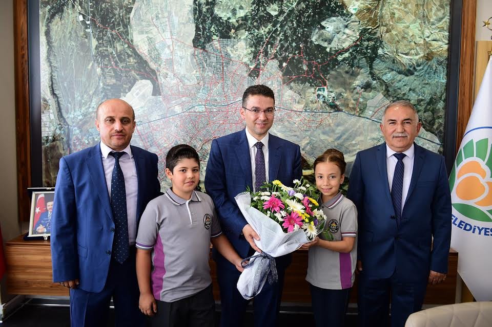 Sümer İlkokulu Müdürü Şükrü Deveceloğlu ve beraberindeki okul öğretmenlerinden Hamdi Algün, 4. sınıf öğrencilerinden Selin Güney ve Efe Berk İlhan ile birlikte İlköğretim Haftası münasebetiyle Büyükşehir Belediyesi Genel Sekreteri Ercan Turan’ı makamında ziyaret ederek bir buket çiçek takdim ettiler.