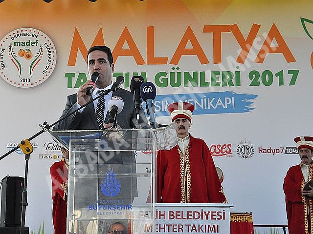 Yılmaz Durmuş başkanlığındaki Malatya Dernekler Federasyonu (MADEF)’nun organize ettiği 2017 Malatya Tanıtım Günleri Yenikapı’da büyük bir coşkuyla başladı. Pazar gününe kadar devam edecek dev organizasyonda Malatyalılar İstanbul’da gövde gösterisi yaptı. Malatya'nın yöresel lezzetlerinin, oyunlarının sergilendiği Malatya Tanıtım Günleri muhteşem bir Açılış Töreni ile Malatyalılarla ve Türkiye’nin 81 vilayetinden her kesimin yaşadığı İstanbul’da başladı. İsmail Beyhan hocanın okuduğu Kuran-ı Kerim tilavetinden sonra açılış konuşmasını yapan MADEF Genel Başkanı Yılmaz Durmuş, Malatyalıları İstanbul’da buluşturduklarını söyleyerek kendilerini yalnız bırakmayan herkese teşekkür etti. Malatyalıların Ablası Ak Parti Genel Başkan Yardımcısı Öznur Çalık ise yaptığı konuşmasında Dünyanın başkenti İstanbul ve kayısının başkenti olan Malatya’nın bir arada olduğunu söyledi. Malatya Valisi Ali Kaban insanıyla, kültürüyle Malatya’nın eşsiz bir yapıya sahip olduğunu dile getirdi. İstanbul Valisi Vasip Şahin ise daha önce Malatya’da görev aldığını söylerken kendisini de Malatyalı hissettiğini belirtti. Gümrük ve Ticaret Bakanı aslen Malatyalı olan Bülent Tüfenkci de yaptığı konuşmasında İstanbul’da misafir değil de ev sahibi gibi olduklarını söyleyerek, “Malatya Türkiye’de birlik ve beraberliğin harmanlandığı şehirlerden biridir. Malatya kültürlerin kavşak noktasıdır. Malatya’yı farklı kılan insanıdır zalime taviz göstermez mazlumun da her zaman yanındadır” diye konuştu. Birlik ve beraberlikten taviz vermeyerek adeta gövde gösterisi yapılan açılışta AK Parti, CHP ve MHP milletvekilleri de birer konuşma gerçekleştirdi. Belediye başkanları da sırayla konuşmalarını gerçekleştirirken hep bir ağızdan Malatya’nın bütünlüğü ve birliği dile getirildi. Evkur Yeni Malatyaspor Başkanı Adil Gevrek de yaptığı konuşmasında takımlarına sahip çıktığı için tüm hemşehrilerine teşekkür etti. MADEF Başkanı Yılmaz Durmuş’un konuşmacılara plaket takdimi sonrası gerçekleşen kurdele kesim töreniyle 2017 Malatya Tanıtım Günleri tüm görkemiyle başladı. Halaylarla, türkülerle, yöresel lezzetleriyle, tarihiyle, kültürüyle Malatyalılar İstanbul’da adeta destan yazdı. Yoğun kalabalıkla devam eden Malatya Tanıtım Günleri 5 Kasım Pazar gününe kadar Yanikapı Etkinlik Alanı’nda devam edecek.