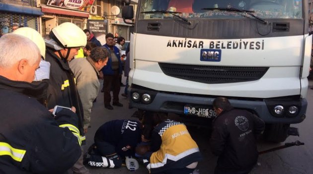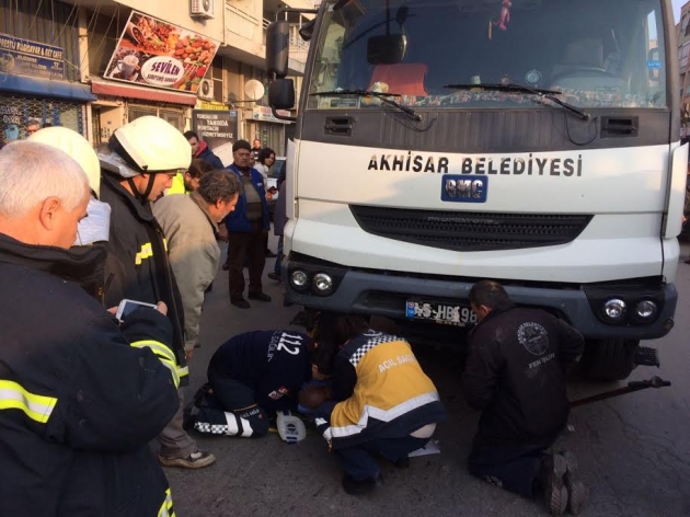 Engelli vatandaş kısa sürede Manisa Büyükşehir Belediyesi Akhisar Amirliği itfaiye ekipleri ve 112 Acil Servis ekipleri tarafından kamyonun altından çıkarıldı