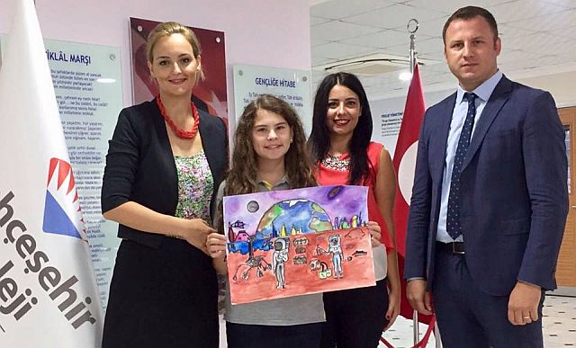 Çorlu Bahçeşehir Kolejinden bir başarı öyküsü daha. Colorado Üniversitesine bağlı Mars Society’nin düzenlediği “Mars’ta Bir Yaşam Olsaydı Nasıl Olurdu?” konulu yarışmanın sonuçları belli oldu. Resim alanındaki yarışmada Özel Çorlu Bahçeşehir Ortaokulu 6. sınıf öğrencisi Derin Lal Özoğuzresim öğretmeni Deniz Bağcı ve Fen bilimleri öğretmeni Başak Çağlayan PEY rehberliğinde yaptığı çalışmayla dünya çapında ikinciliğe layık görüldü. Ödüller, NASA’dan bilim insanlarının da konuşmacı olarak katılacağı Kaliforniya Üniversitesinde sahiplerine verilecek. Özel Çorlu Bahçeşehir Ortaokulu Müdürü Ömer Faruk Özer, öğrenciyi tebrik ederek hayalleri görülebilir hâle getirebilmenin ne kadar önemli olduğunu vurguladı. Bahçeşehir Koleji olarak uyguladığımız STEM+A eğitimi ile böyle başarıların daha da artacağını ve geleceğe yönelik çalışmaların önünün daha da açılacağını belirtti.