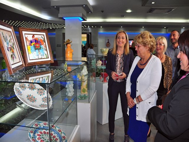 Kültür ve Sosyal İşler Daire Başkanı Nursel Ustamehmetoğlu ve beraberindekiler, Hünerli Eller sergisinin açılışının ardından, Manisa Büyükşehir Belediyesi S.S Manisa Merkez Tarımsal Kalkınma Kooperatifi (Kadın Kooperatifi) işbirliğiyle düzenlenen, Kooperatif üyesi hanımların El Sanatları sergisinin açılışına da katıldı. Kadın Kooperatifi Başkanı Nilgün Beşirik, “Kadın Kooperatifi üyesi kadınlarımızın el emeği ile yaptıkları eserleri burada sergiliyor olmak büyük bir onur. Bizlere desteklerini esirgemeyen Büyükşehir Belediyesine çok teşekkür ediyoruz” dedi. Sergiyi gezen Ustamehmetoğlu’na Manisa Bezi üzerine yapılmış Büyükşehir Belediye Başkanı Cengiz Ergün’ün portresi hediye edildi.