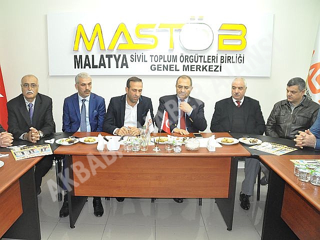 Adil Gevrek’in başkanlığını yaptığı Malatya Sivil Toplum Örgütleri Birliği(MASTÖB) Malatya Valisi Ali Kaban’ı misafir etti. Mastöb genel merkezinde bir araya gelen Malatya’nın değerleri Malatya’nın geleceği, Malatya’yı daha güzel hale getirebilmek için nelerin yapılabileceği istişare edilerek çözümler üretildi. MASTÖB Genel Başkanı Adil Gevrek, MASTÖB’ün çalışmaları hakkında bilgiler verirken ileriye dönük projeleri de dile getirdi. Vali Ali Kaban ise yaptığı açıklamasında yaklaşık 5 aydan beri Malatya’da olduğunu belirterek, “Kısa süre içersinde Malatya’da olmama rağmen Malatya’nın her anlamda çok güzel bi yer olduğunu insanların pozitif olduğunu rahatlıkla söyleyebilirim” diye konuştu. MASTÖB yönetim kurulu üyelerini de tek tek dinleyen Vali Ali Kaban ihtiyaç duyulan her sorunla ilgileneceklerini gerekli adımların atılacağını Malatya için ellerini taşın altına koyacaklarını bildirdi.