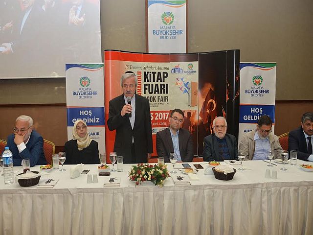 Malatya’nın geleneksel hale gelen Malatya Anadolu Kitap ve Kültür Fuarı’nın bu yılki Onur Konuğu Türkiye Yazarlar Birliği (TYB) Şeref Başkanı Mehmet Doğan oldu. Fuar kapsamında birçok etkinlikte yer alan Doğan, geçtiğimiz akşam Malatya Büyükşehir Belediyesi’nin onuruna verdiği yemekte yazar dostlarıyla bir araya geldi. Malatya Büyükşehir Belediyesi Genel Sekreteri Ercan Turan, Malatya Kültür AŞ Genel Müdürü Sabri Akın ve Mehmet Doğan’ın yanı sıra STK Başkanları ve kültür adamları katıldı. Türkiye Yazarlar Birliği (TYB) İstanbul Şube Başkanı Mahmut Bıyıklı’nın yönettiği program Mehmet Doğan’ın hayatının anlatıldığı belgeselle başladı.