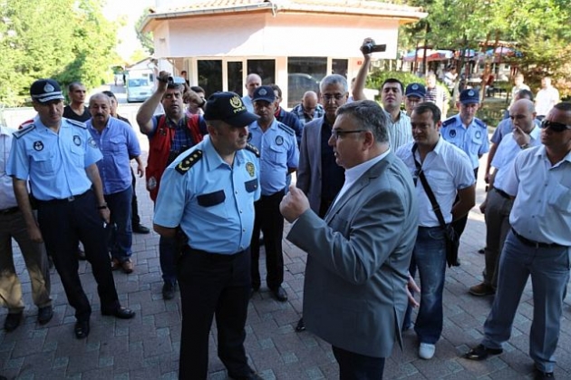 Kırklareli Belediye Başkanı Mehmet Siyam Kesimoğlu, İstasyon Caddesi’nde yaklaşık 1 aydır Kırklareli Belediyesi çalışmalarını engellemek için konulan polis aracının yanına giderek yetkililerden bilgi aldı.
